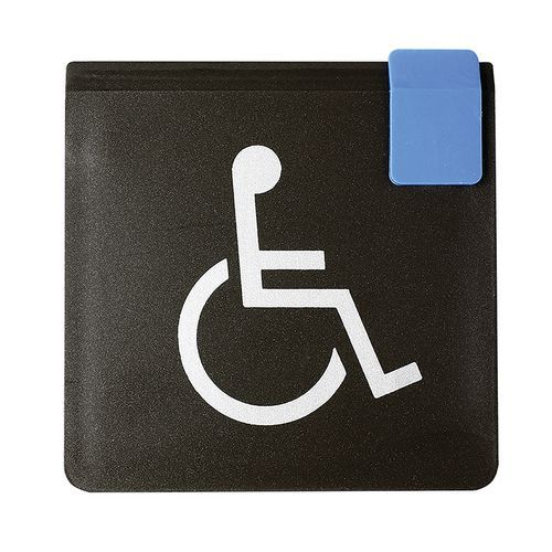 | Descrizione | Targa per porta, Adesivo: si, Tipo di cartello: Indicazione, Messaggio: WC persone disabili, Altezza: 95 mm |