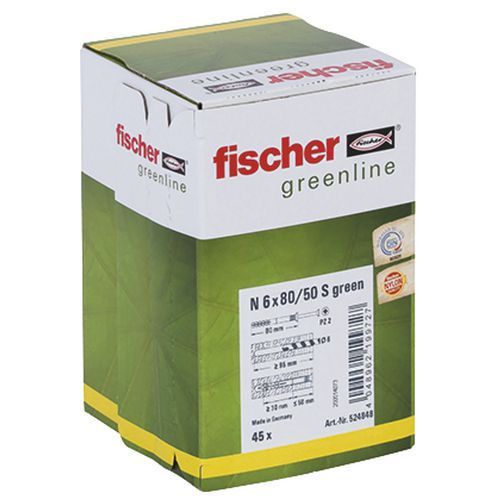 | Descrizione | Tassello a percussione N Green 6 80 50 S, Tassello, lunghezza: 80 mm, Ø: 6 mm, Materiale: Nylon |