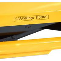 - Tavola elevatrice a sollevamento idraulico con portata massima di 500 kg.