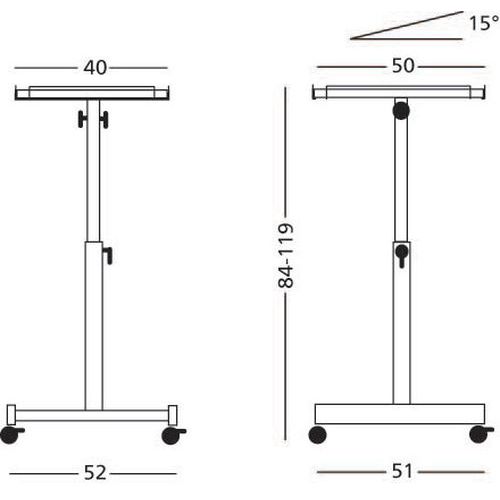 | Descrizione | Tavolino per videoproiettore Flexsol, Modello: 4 rotelle, di cui 2 con freno, Carico max.: 20 kg |