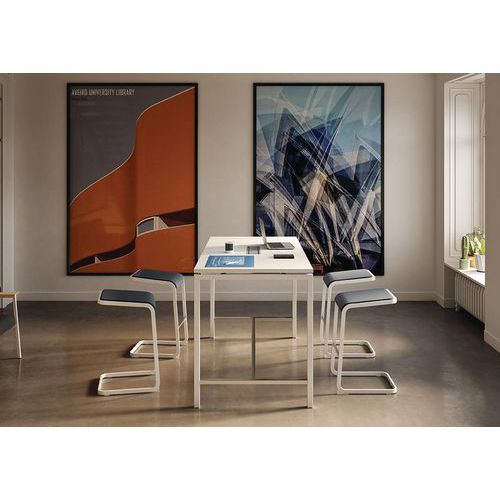 - Il tavolo alto in melaminico antigraffio e antiriflesso è ideale come mobile per il coworking.