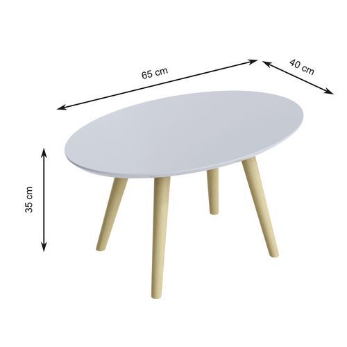 Tavolo basso Scandi, Tipo di base: 4 piedi, Larghezza: 65 cm, Forma: Ovale, Ripiano, colore: Bianco Tavolo basso Scandi, Tipo di base: 4 piedi, Larghezza: 65 cm, Forma: Ovale, Ripiano, colore: Bianco