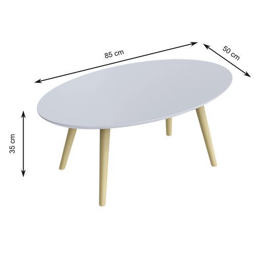 Tavolo basso Scandi, Tipo di base: 4 piedi, Larghezza: 85 cm, Forma: Ovale, Ripiano, colore: Bianco Tavolo basso Scandi, Tipo di base: 4 piedi, Larghezza: 85 cm, Forma: Ovale, Ripiano, colore: Bianco