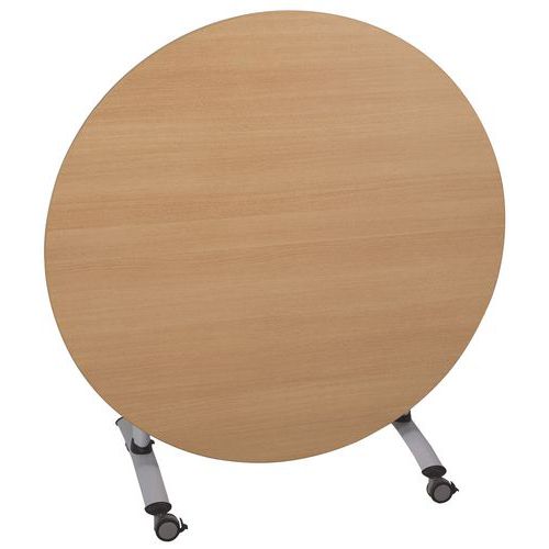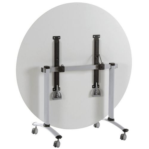 Il tavolo da riunione rotondo pieghevole Axe con piano girevole consente di risparmiare spazio quando riposto. Blocco automatico del piano in posizione di lavoro (orizzontale) e verticale (stoccaggio). Sistema di collegamento rapido tra i piani mediante viti a testa zigrinata. Dotato di 4 rotelle Ø 75 mm con freno. Il tavolo da riunione rotondo pieghevole Axe con piano girevole consente di risparmiare spazio quando riposto. Blocco automatico del piano in posizione di lavoro (orizzontale) e verticale (stoccaggio). Sistema di collegamento rapido tra i piani mediante viti a testa zigrinata. Dotato di 4 rotelle Ø 75 mm con freno.