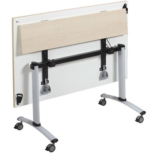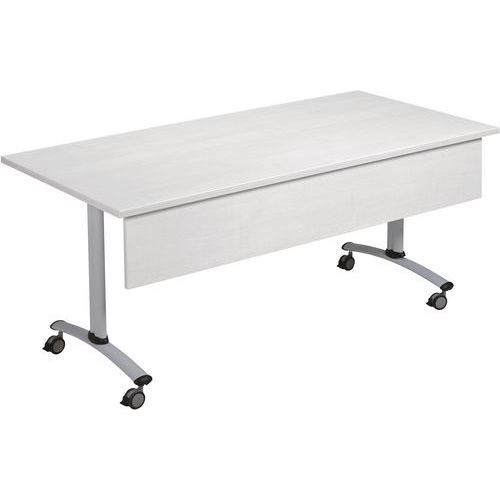 Il tavolo da riunione quadrato pieghevole con pannello di fondo Axe con piano girevole consente di risparmiare spazio quando riposto. Blocco automatico del piano in posizione di lavoro (orizzontale) e verticale (stoccaggio). Sistema di collegamento rapido tra i piani mediante viti a testa zigrinata. Dotato di 4 rotelle Ø 75 mm con freno. Il tavolo da riunione quadrato pieghevole con pannello di fondo Axe con piano girevole consente di risparmiare spazio quando riposto. Blocco automatico del piano in posizione di lavoro (orizzontale) e verticale (stoccaggio). Sistema di collegamento rapido tra i piani mediante viti a testa zigrinata. Dotato di 4 rotelle Ø 75 mm con freno. Altezza pannello di fondo 25 cm. Bordi in ABS spessi 2 mm. Gambe in metallo laccato epossidico. Prodotto in Francia. Fornito con gambe smontate.
