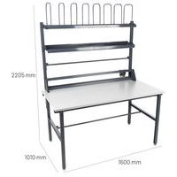 Postazione d'imballaggio solida e ultraergonomica. Compatta: ingombro ridotto al suolo. Tavolo dotato di apparecchiatura ottimale. Piedi con martinetto per una regolazione perfetta. Altezza del tavolo con piano: 867 mm.