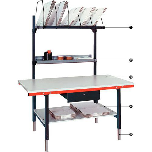 | Descrizione | Tavolo da imballaggio rinforzato, Carico max.: 300 kg, Altezza totale: 2310 mm, Peso: 95.0 kg |