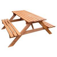 - Tavolo da pic-nic robusto e confortevole con panche. Piano rinforzato a 8 listelli in pino, ampia seduta a 3 listelli in pino. Legno trattato con asciugatura in autoclave di classe 4 con pressione a vuoto. Alta resistenza a tarli, termiti e insetti. Viti integrate in modo da non rischiare di impigliarsi o di ferirsi.
