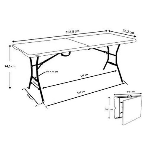 - Tavolo pieghevole da 6 a 8 persone molto leggero e pratico: le gambe si incastrano nel ripiano.