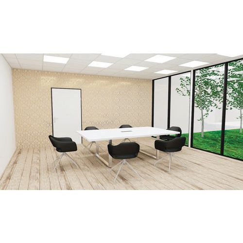 | Descrizione | Tavolo per conferenze L240 x P140 cm gambe a nastro nero, Tipo di base: A forma di U, Altezza: 735 cm |