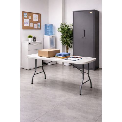 | Descrizione | Tavolo pieghevole ricondizionato, Capacità (n. di persone): 6, Ripiano, colore: Bianco/Beige, Base |