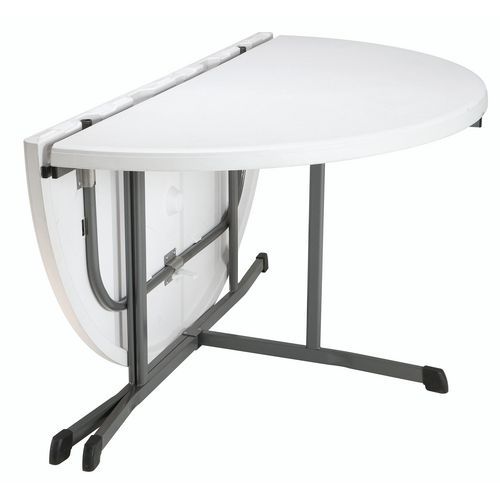 | Descrizione | Tavolo rotondo pieghevole in 2, Tipo di base: A forma di L, Altezza: 74 cm, Larghezza: 150 cm |