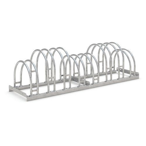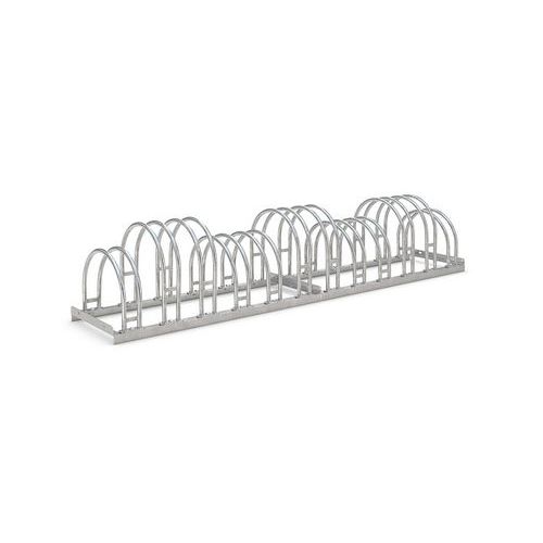 Design robusto in acciaio anti-corrosione con barriere per parcheggio ad arco. Offre molte postazioni in uno spazio limitato. Per consentire il parcheggio rapido di biciclette: davanti a negozi, ambulatori, ecc. Gli ancoraggi al suolo e i supporti di montaggio sono venduti separatamente. Realizzato nell'UE