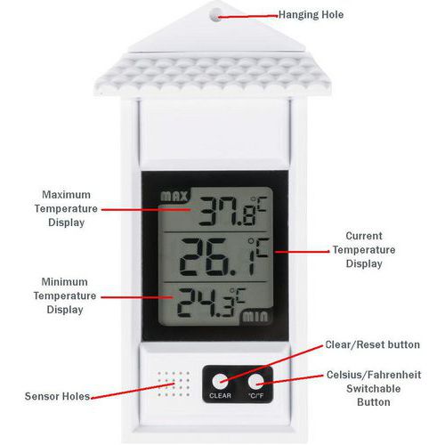 | Descrizione | Termometro digitale da interni/esterni, Temperatura misurata Max: 50 °C, Pila inclusa: no |