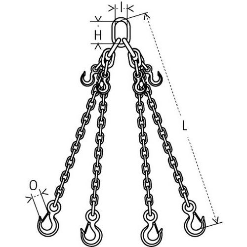 Tirante a catena a 4 bracci - Portata da 2360 a 17.000 kg - Regolabile tramite gancio autobloccante