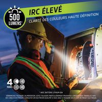 Tecnologia led: questa torcia a led da 500 lumen* comprende un IRC elevato per una brillantezza dei colori ad alta definizione *Con batteria agli ioni di litio.