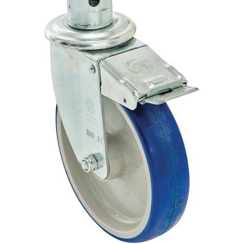 Ruote di grande diametro regolabili in altezza con sistema di bloccaggio.