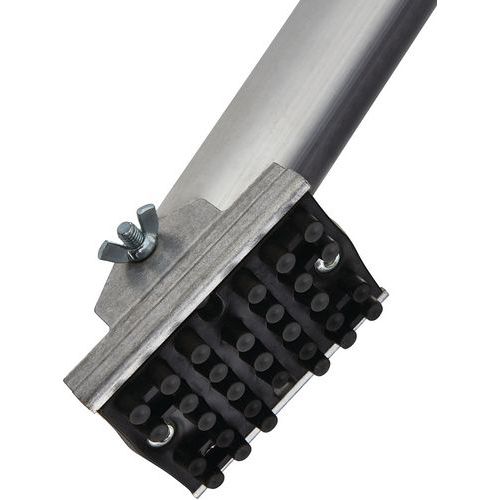 Trabattello mobile, struttura in alluminio saldato, parapetto a doppio corrente. Zoccoli applicati rimovibili in alluminio (150 mm), montaggio rapido. Piastrina dello stabilizzatore antiscivolo orientabile, con regolazione del livello integrata. Ruote con blocco estremamente potente e regolazione millimetrica di 200 mm ogni 12,5 mm. Sistema di collegamento brevettato Ergoblock® per un bloccaggio super affidabile in 1 solo gesto. Pianale di tipo R08 Comabi.