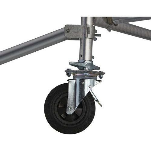 Trabattello mobile, struttura in alluminio saldato, parapetto a doppio corrente. Zoccoli applicati rimovibili in alluminio (150 mm), montaggio rapido. Piastrina dello stabilizzatore antiscivolo orientabile, con regolazione del livello integrata. Ruote con blocco estremamente potente e regolazione millimetrica di 200 mm ogni 12,5 mm. Sistema di collegamento brevettato Ergoblock® per un bloccaggio super affidabile in 1 solo gesto. Pianale di tipo R08 Comabi. Realizzato in Francia Carico max. (kg) : 200 kg