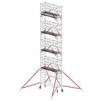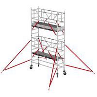 Trabattello mobile stretto, ideale per spazi ristretti interni ed esterni. Struttura estendibile grazie alla compatibilità con tutti i componenti della serie RS TOWER 5. Combinazione possibile con altre applicazioni, quali una passerella o una mensola per disassamento. Piattaforma e zoccoli Fiber-Deck®: 30% più leggeri del legno, montaggio e smontaggio semplici e rapidi. GuardRail Safe-Quick®: innovativo sistema di mancorrente permanente ad alta protezione. Indistruttibile, massima sicurezza grazie ai gradini antiscivolo saldati su tutto il bordo. Tutti i pezzi sono indipendenti gli uni dagli altri e possono essere sostituiti. Struttura robusta con raccordi per traverse a innesto. I raccordi non sono saldati e hanno una resistenza elevata. Ruote con doppio freno per garantire la massima stabilità della struttura. Coppiglie di sicurezza fissate direttamente al telaio.