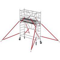 Trabattello mobile stretto, ideale per spazi ristretti interni ed esterni. Struttura estendibile grazie alla compatibilità con tutti i componenti della serie RS TOWER 5. Combinazione possibile con altre applicazioni, quali una passerella o una mensola per disassamento. GuardRail Safe-Quick®: innovativo sistema di mancorrente permanente ad alta protezione. Indistruttibile, massima sicurezza grazie ai gradini antiscivolo saldati su tutto il bordo. Tutti i pezzi sono indipendenti gli uni dagli altri e possono essere sostituiti. Struttura robusta con raccordi per traverse a innesto. I raccordi non sono saldati e hanno una resistenza elevata. Il sistema è fornito con piattaforme e zoccoli in legno. Ruote con doppio freno per garantire la massima stabilità della struttura. Coppiglie di sicurezza fissate direttamente al telaio.