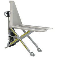 - Transpallet manuale ad alzata elevata per spostare e posizionare le merci a un'altezza di lavoro ergonomica.