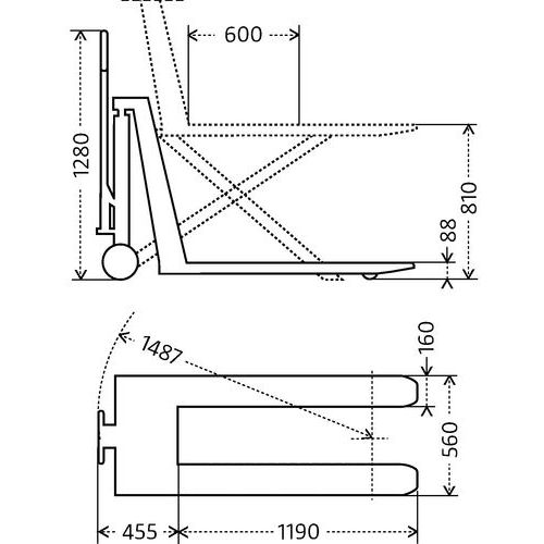 | Descrizione | Transpallet manuale ad alzata elevata, Portata: 1000 kg, H sollevamento max.: 800 mm |