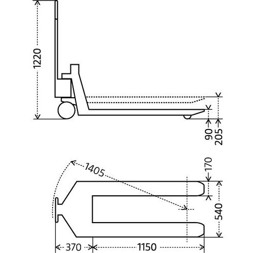 | Descrizione | Transpallet manuale con sistema di pesatura LHM200SC - Forca lunga 1150 mm - Portata 2000 kg |