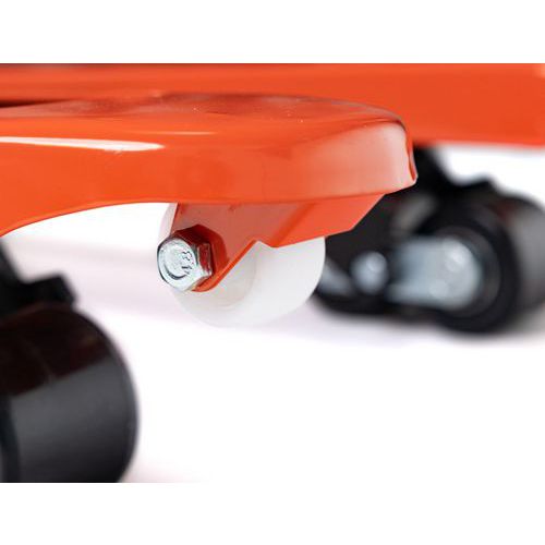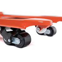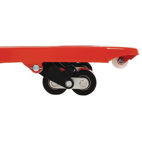Estremità delle forche ristrette e dotato di ruote doppie per adattarsi più facilmente a superfici irregolari.
