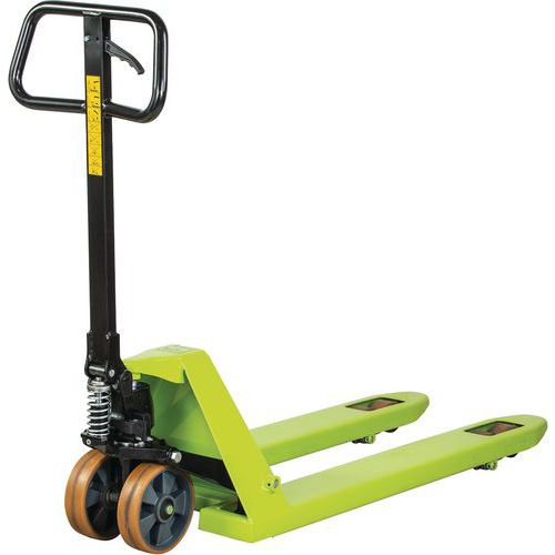 | Descrizione | Transpallet manuale GS25, Portata: 2500 kg, Lunghezza Forca: 1150 mm, Ruota di guida, materiale: Poliuretano |