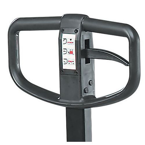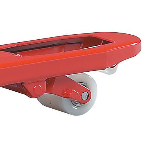Transpallet con forche corte da 800 mm. Molto robusto per un uso intensivo. La lunghezza ridotta della forca lo rende il mezzo ideale per le manovre in spazi limitati, per esempio all'interno dei camion.