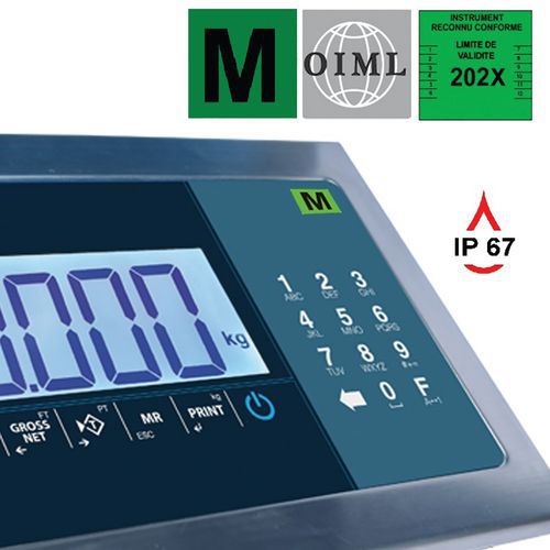 | Funzioni | Pesatura, taratura, conteggio, totalizzazione manuale o automatica, tabulazione diretta del peso della tara, memorizzazione di 5 tare, regolazione +/- con indicazione visiva (arancione-verde-rosso), uscita RS232. |