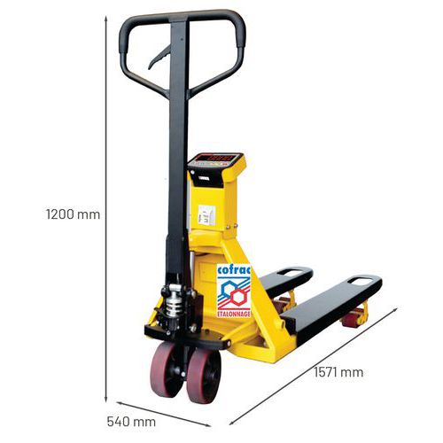 | Descrizione | Transpallet con sistema di pesatura con stampante certificato COFRAC, Portata: 2000 kg |