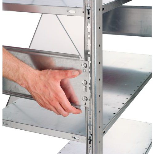 Rinforzo laterale delle strutture delle scaffalature. Traversa da posizionare tra 2 montanti. Montaggio a inserimento semplice e rapido nei profilati a T.