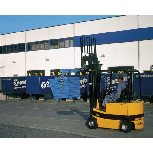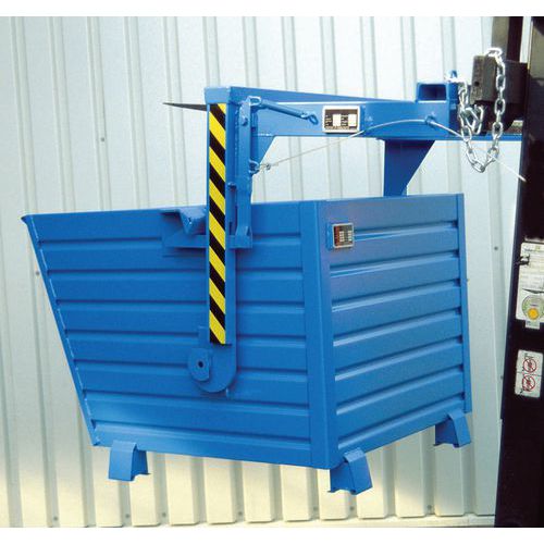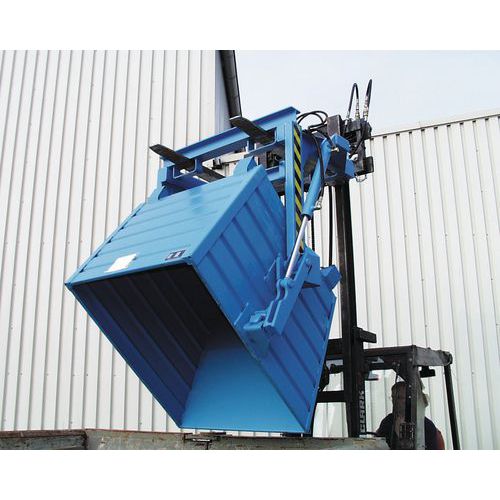 - Traversa meccanica in acciaio per carrello elevatore per lo svuotamento di benne ribaltabili.