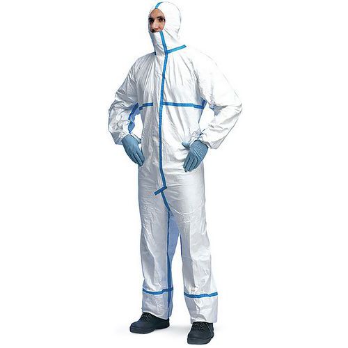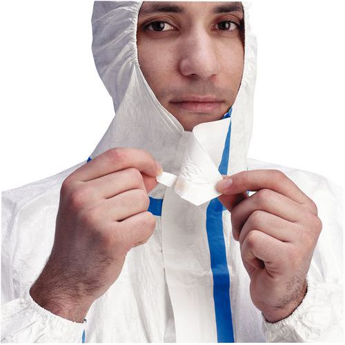 - Tuta monouso con cappuccio, consigliata per lavori che richiedono l'uso di amianto.