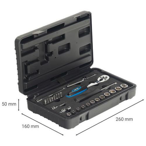 Valigetta compatta e polivalente composta da 26 utensili da 1/4.