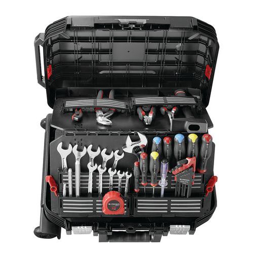 | Descrizione | Valigetta degli attrezzi con ruote, N. di attrezzi: 39, Modello: Manutenzione generica, Peso: 11.9 kg |