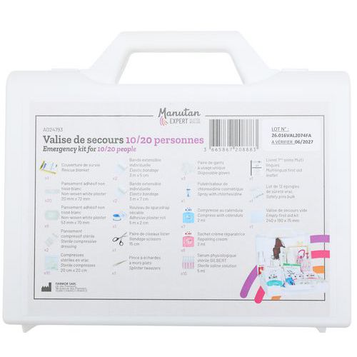 | Descrizione | Valigetta di pronto soccorso multiuso 10/20 persone, Colore: Bianco, Larghezza: 180 mm, Lunghezze: 240 mm |