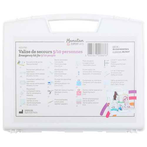 | Descrizione | Valigetta di pronto soccorso multiuso universale 5/10 persone, Colore: Bianco, Larghezza: 205 mm |