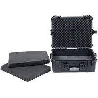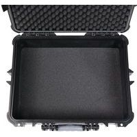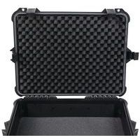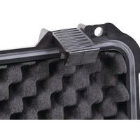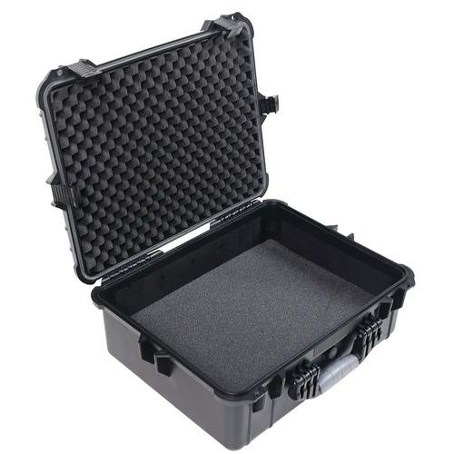 Valigetta antiurto impermeabile ad acqua e polvere. Interno con espanso goffrato per una protezione ottimale. Dotata di cerniere in acciaio inox autobloccanti a 90°. Chiusura con bottone a pressione sotto la maniglia. Fondo in espanso presagomato adattabile a oggetti di qualsiasi forma.