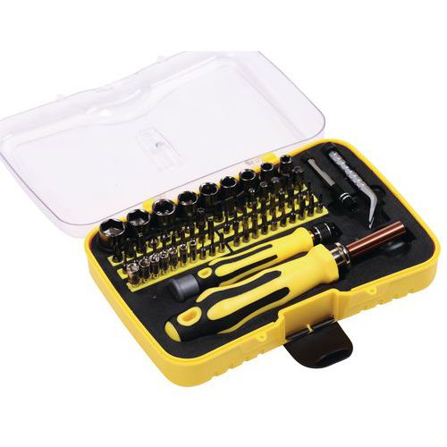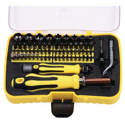 | Descrizione | Valigetta per utensili magnetici di precisione, Cavità a vite: Presa esagonale, N. di pezzi: 70 |