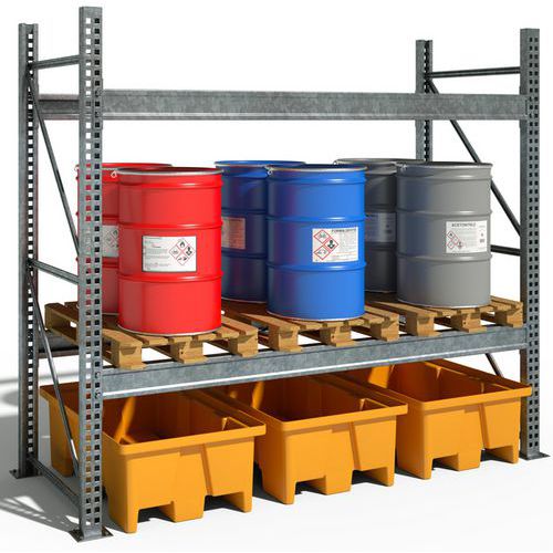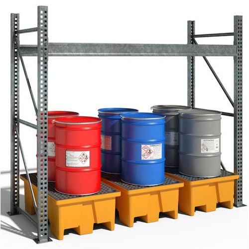 | Descrizione | Vasca di raccolta 2 fusti da 240 L con griglia PEHD, Griglia: si, Capacità di ritenzione: 240 L |
