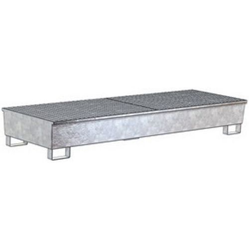 Vasca di raccolta con griglia rimovibile in acciaio per una raccolta del 50%. Resistente al carico e ai prodotti stoccati. Ideale per lo stoccaggio sicuro di prodotti pericolosi. Con una capacità di ritenzione di 440 L, questa vasca di raccolta è perfetta per stoccare 4 fusti in piedi. L'estrazione del liquido avviene tramite pompa. Piedi a U con altezza di 100 mm che consentono il facile passaggio delle forche e garantiscono una stabilità ottimale.