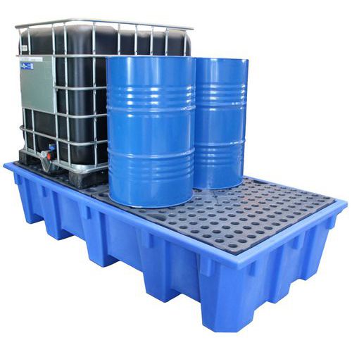 | Descrizione | Vasca di raccolta IBC con griglia, Griglia: si, Capacità di ritenzione: 1050 L, Colore: Blu |