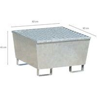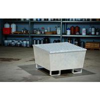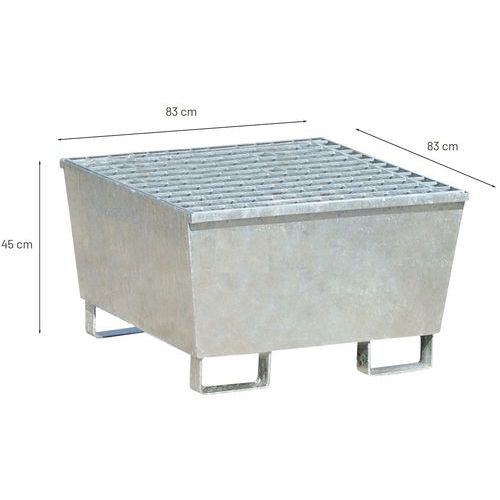 Vasca di raccolta con griglia rimovibile in acciaio per la ritenzione di 1 fusto da 220 L al 100%.