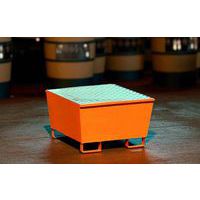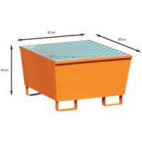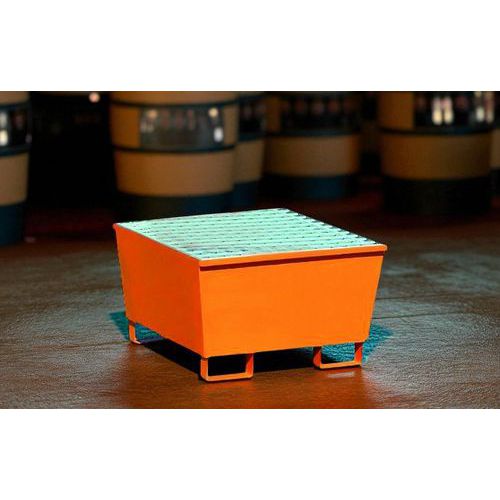 Vasca di raccolta con griglia rimovibile in acciaio per la ritenzione di 1 fusto da 220 L al 100%.