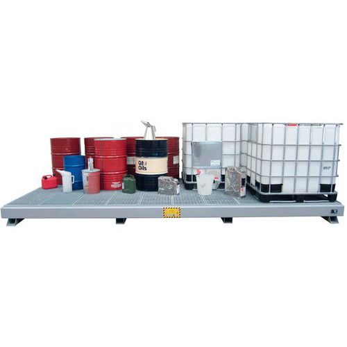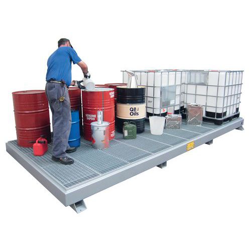 - Ideale per stoccare fusti, cisternette o piccoli contenitori.