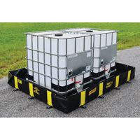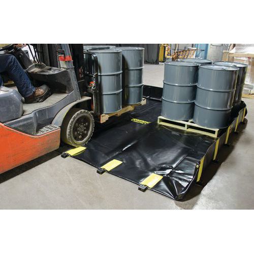 Telone di contenimento a tenuta stagna e portatile per fusti, vasche IBC e cisterne. Installazione rapida e semplice: non richiede alcun assemblaggio. Resistente a temperature estreme (da -50 a 160°F). I rinforzi interni diminuiscono i rischi di inciampo all'esterno del telone. Le pareti si appiattiscono completamente per il passaggio dei macchinari grazie al sistema Rigid-Lock. Eccellente resistenza a raggi UV, petrolio, oli, grassi e acidi. Ogni montante dispone di resistenti occhielli in rame che permettono di fissare la vasca in caso di vento forte. Angoli particolarmente rinforzati che offrono un'eccezionale stabilità. I fermi delle pareti laterali evitano la sfilacciatura e aumentano la rigidità. Design ergonomico per un accesso totale all'interno. Diametro dell'occhiello di fissaggio 1 cm.