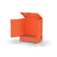 - La versione a copertura coibentata con pannelli a sandwich spessore 40mm include tetto piano fisso in lamiera zincata e porta a doppio battente.